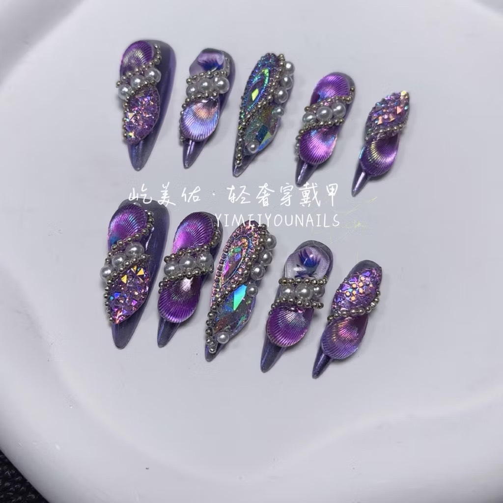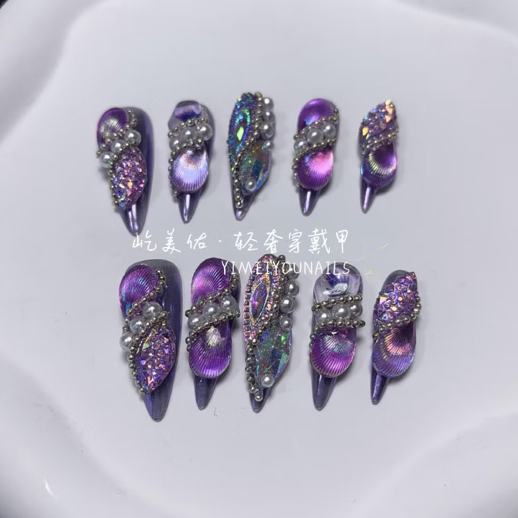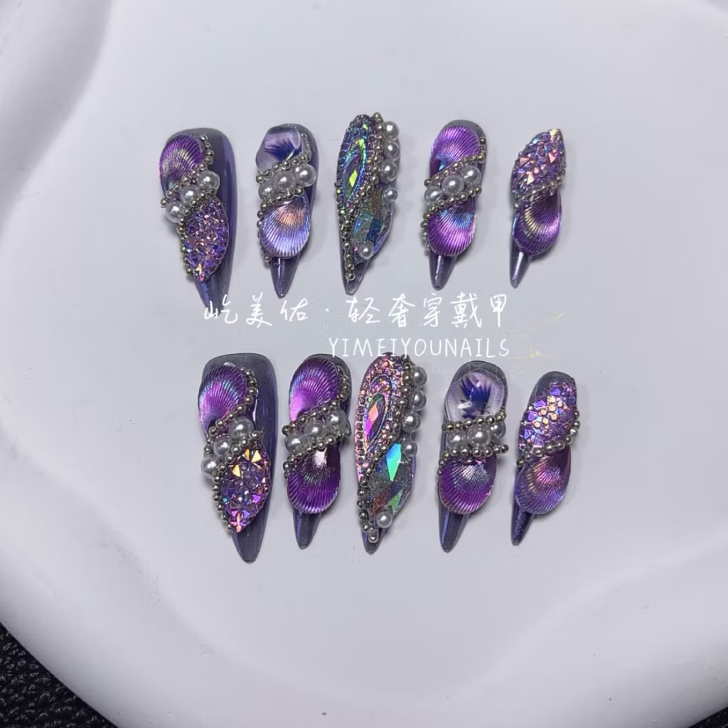 【12#紫蝶】Handmade Nail Wearing Heavy Industry Wearing Nails Manicure Patch Nail Patch Fake Nails 12 #