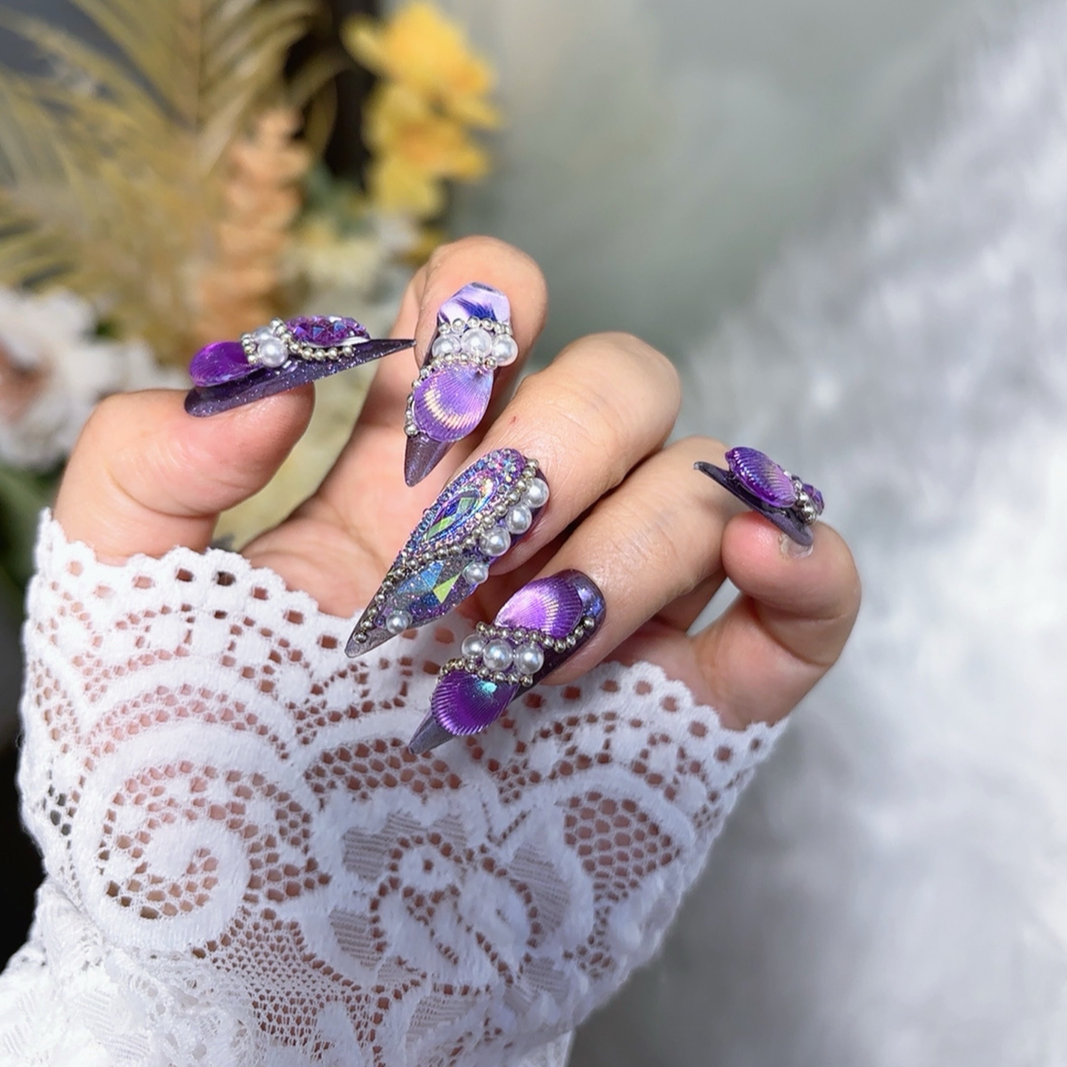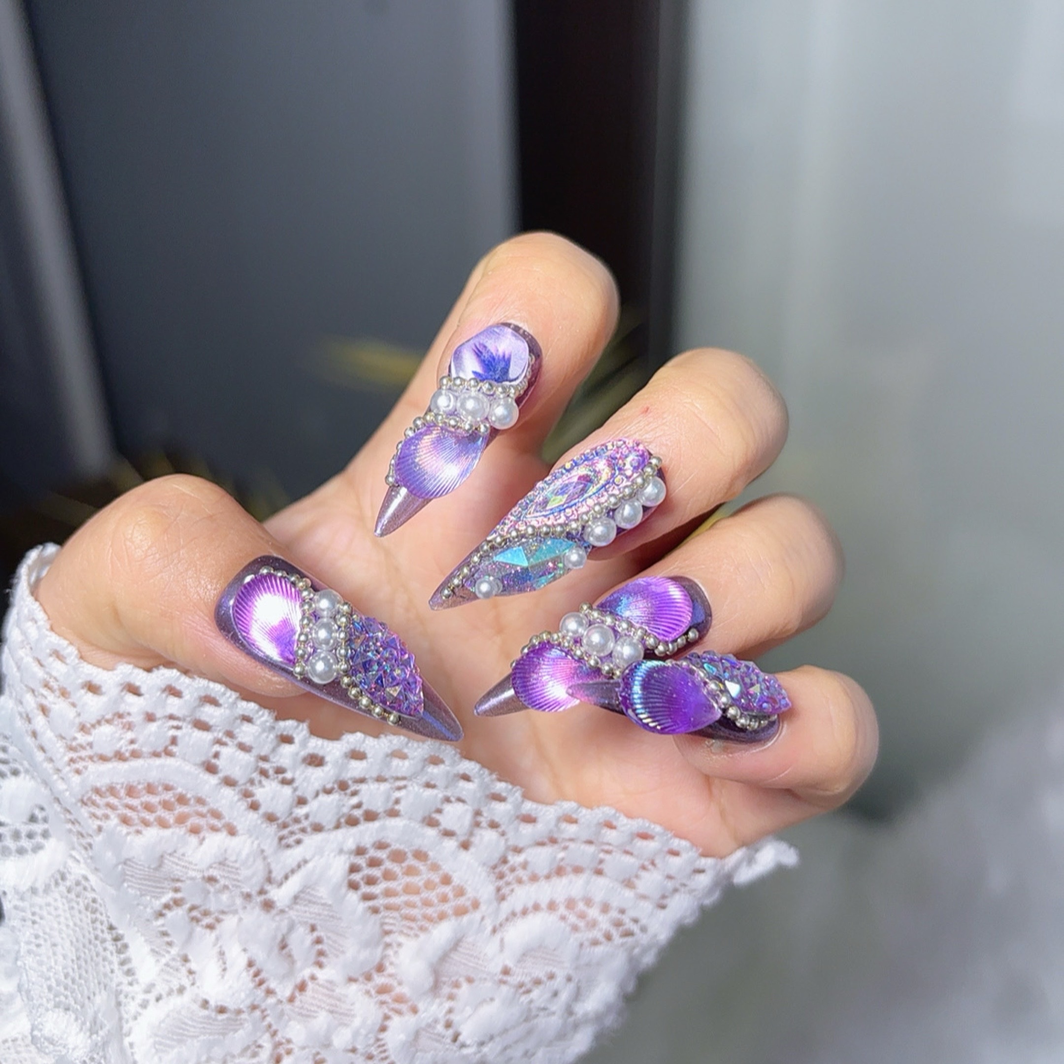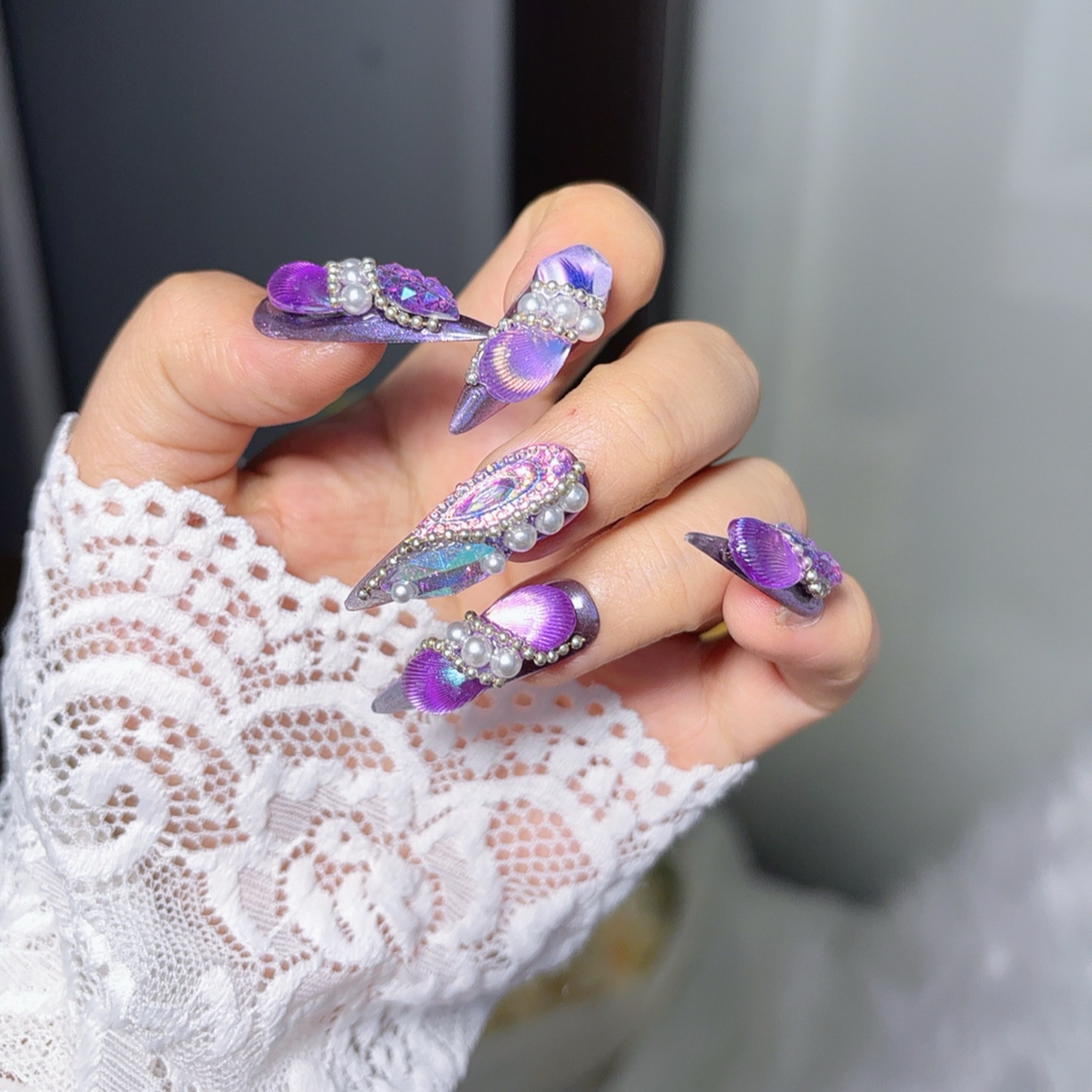 【12#紫蝶】Handmade Nail Wearing Heavy Industry Wearing Nails Manicure Patch Nail Patch Fake Nails 12 #