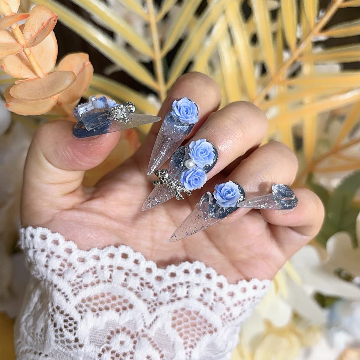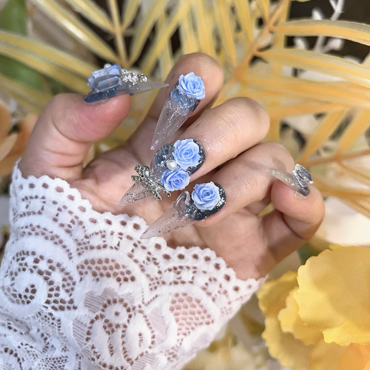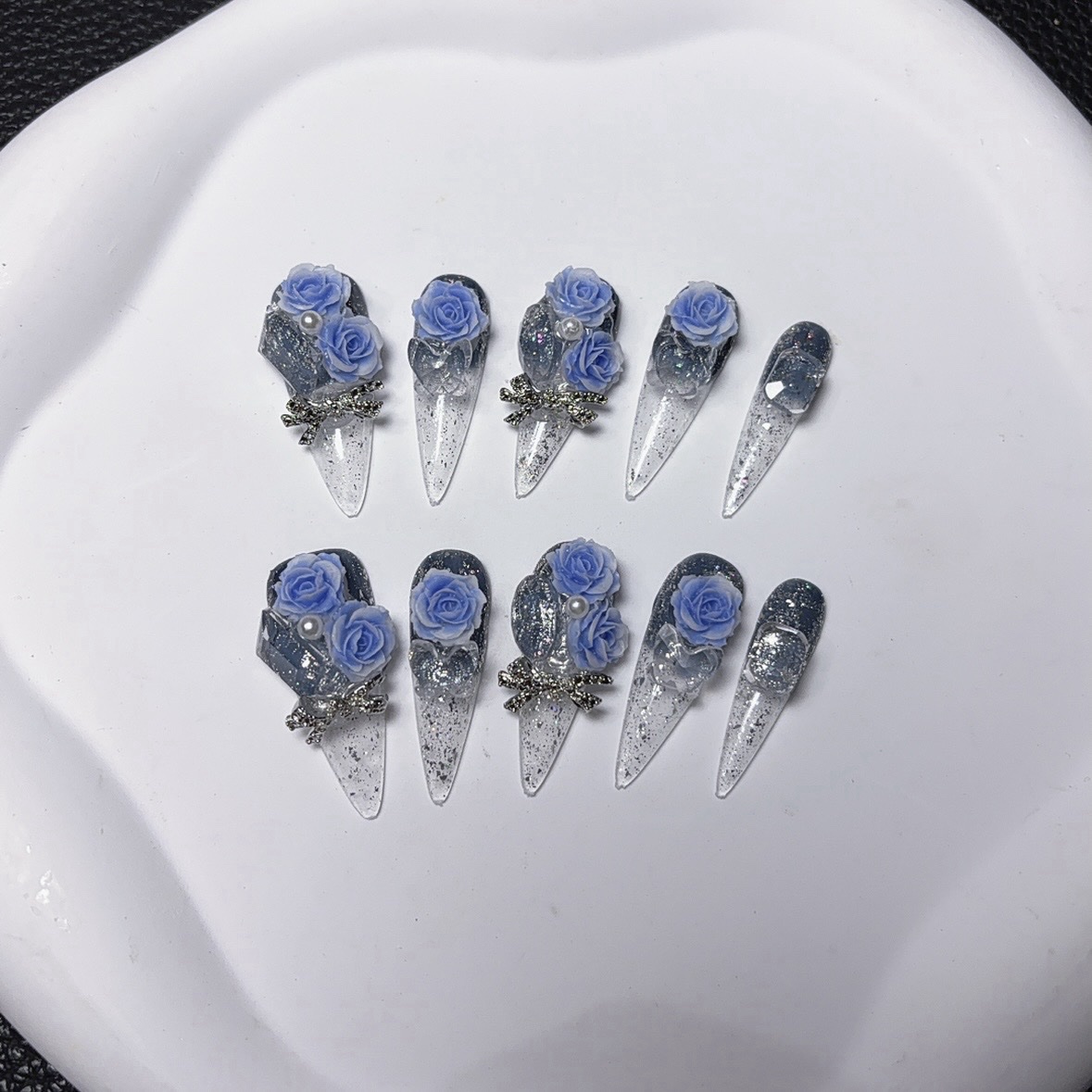 Pure handmade nail heavy industry carved nail patch full size nail patch [72# rose blue]